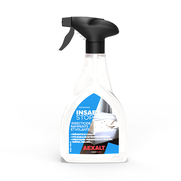 - Un produit insecticide [TP18] en aérosol efficace contre tous les insectes rampants, dont l’action est immédiate : il suffit de pulvériser les insectes visibles pendant 3 secondes et de renouveler l’opération au besoin. Bien lire le mode d’emploi avant application.