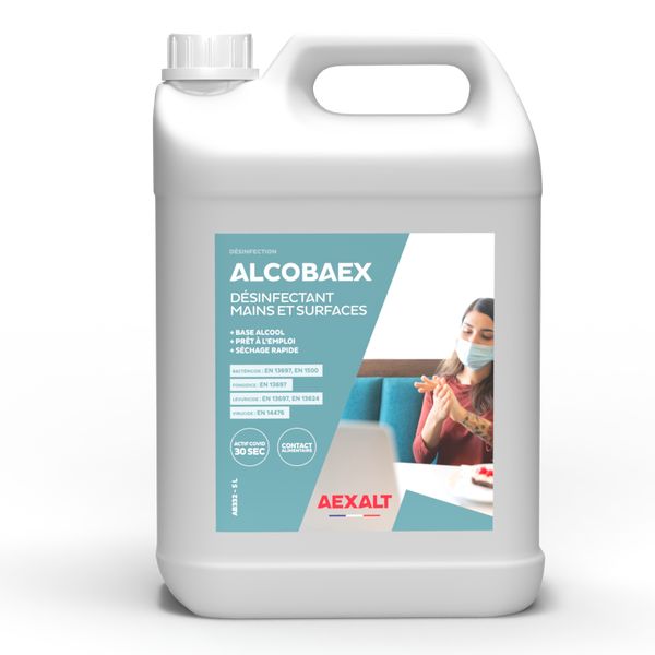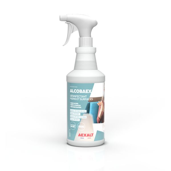 Auto-séchant et sans rinçage, Alcobaex garantit une désinfection rapide et efficace des mains et des surfaces lavables telles que les tables de restaurant, plans de travail, bureaux, les lunettes de toilettes, les poignées de porte, les réfrigérateurs…
