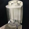 Distributeur de savon mousse ou gel hydroalcoolique avec réservoir rechargeable muni d’un couvercle afin d’éviter l’évaporation de l’alcool.